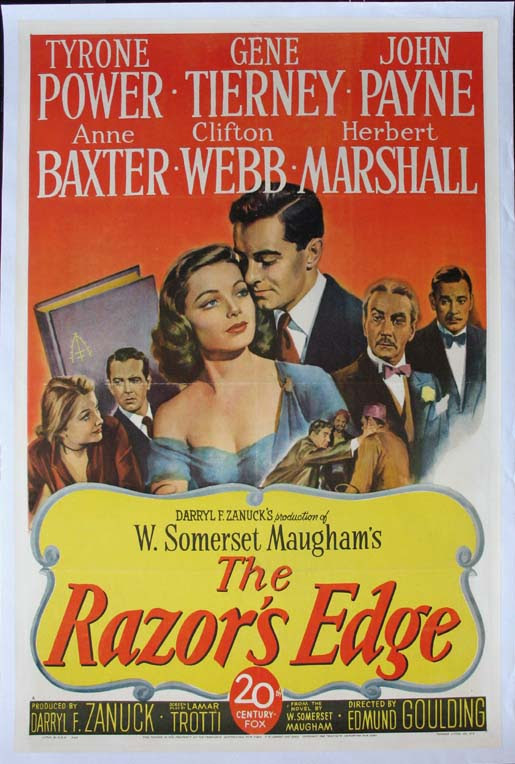 The Razor’s Edge is one of many adaptations of stories by the author W. Somerset Maugham. The story combines philosophy and enlightenment with greed, jealousy, and downfall. These elements sound like they would not mix perfectly at all but each character with these elements come together and connect.